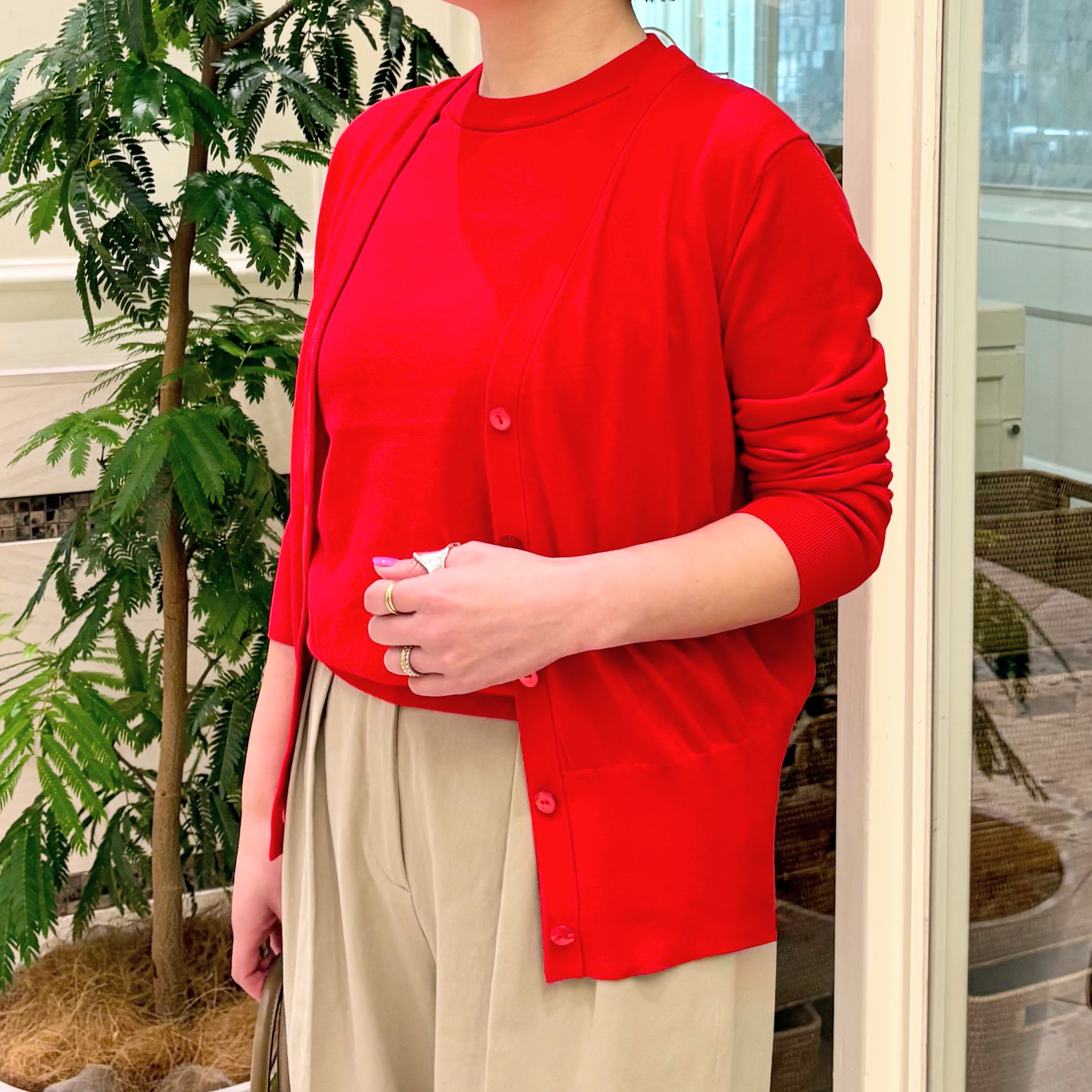 NEW2026.03.16 〈Demi-Luxe BEAMS〉AK+1/16ゲージスビンコットンVネックカーディガン 『AK+1(エーケーワン)/16ゲージスビンコットンVネックカーディガン』 顔周りをシャープに見せてくれるVネックデザインのカーディガンです。 羽織りとしても、ボタンを留めてプルオーバーとしても着回ししやすい1着。 肌触りの良いコットン素材で手洗いも可能ですので、気兼ねなく着用出来ます。 詳しくはこちら