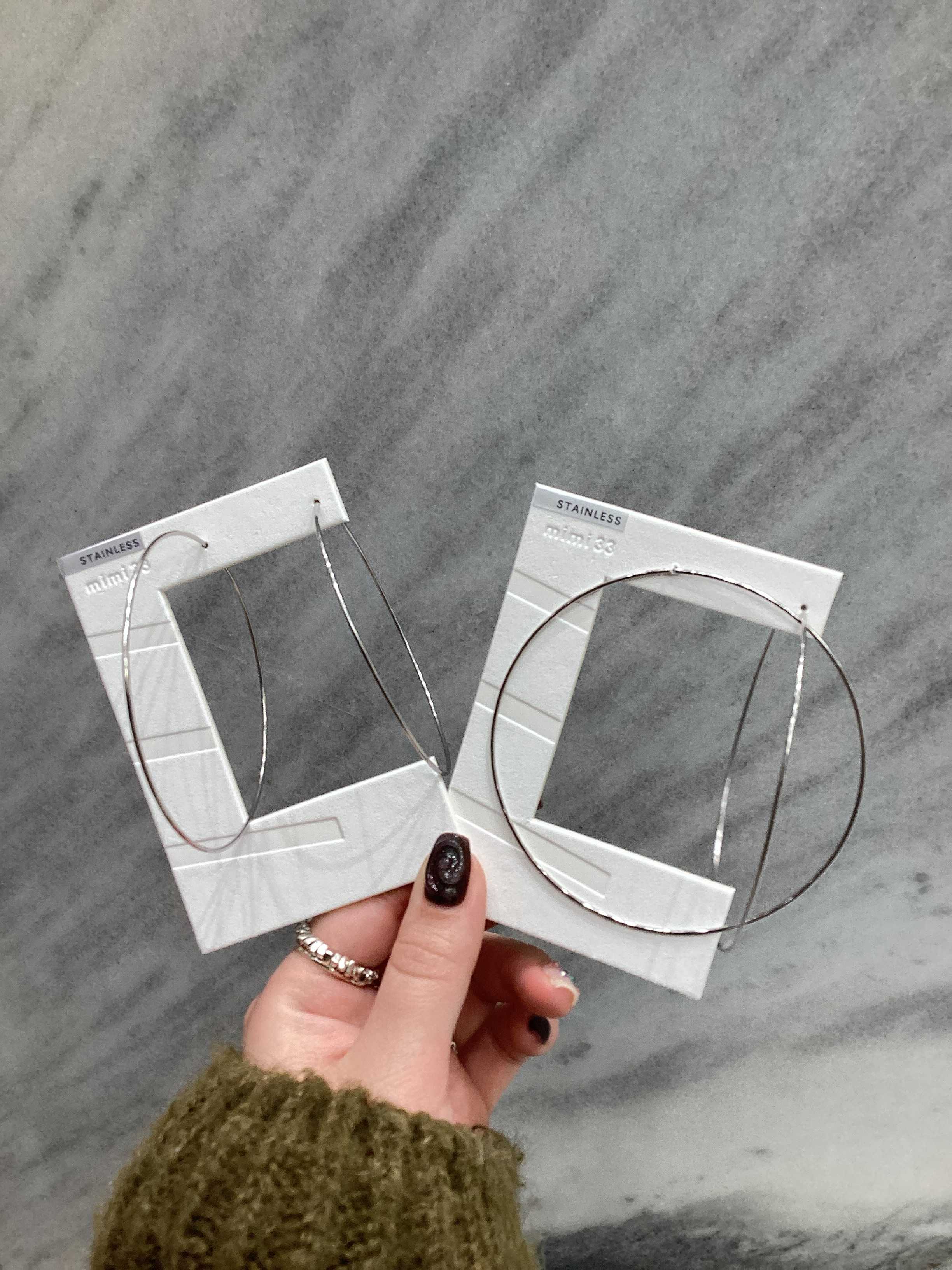 内径5センチ、7センチ、8センチのフープピアスはシルバーが先行発売です。