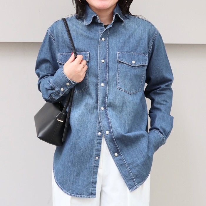 NEW2026.03.07 〈Demi-Luxe BEAMS〉AK+1/8オンスウォッシュドシャツ 『AK+1(エーケーワン)/8オンスウォッシュドシャツ』 コットン素材の8オンスのデニム生地を使用したヴィンテージ感のあるシャツです。 程良いゆとりのあるメンズライクな長めの着丈ですが、すっきりと見えるバランスの取れたシルエット。 羽織としての着用もぜひオススメです。 詳しくはこちら
