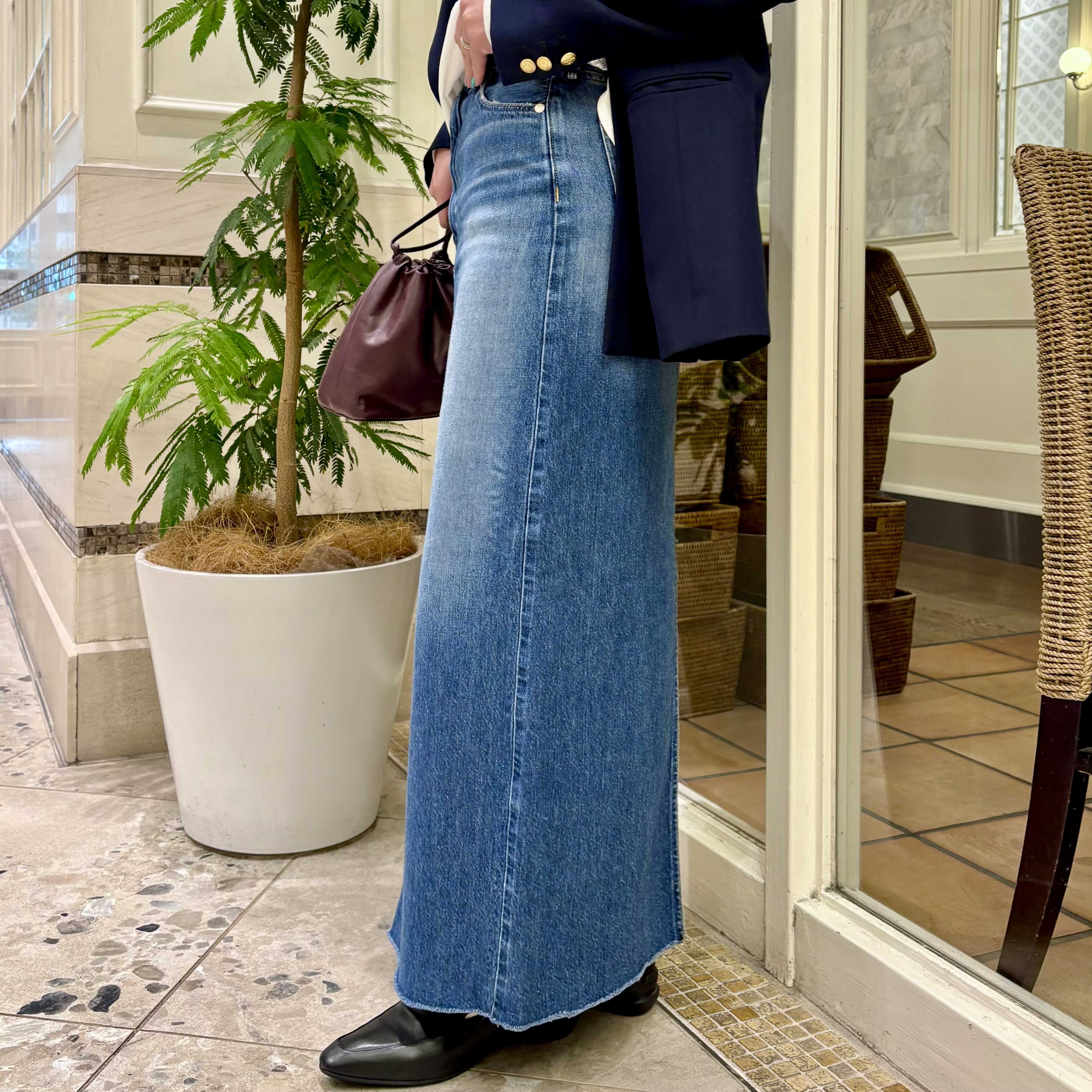 サイズ感はややタイトめなので、私は一番大きい24を着用。生地は柔らかいデニム生地でゴワゴワ感もなく快適な着心地です!